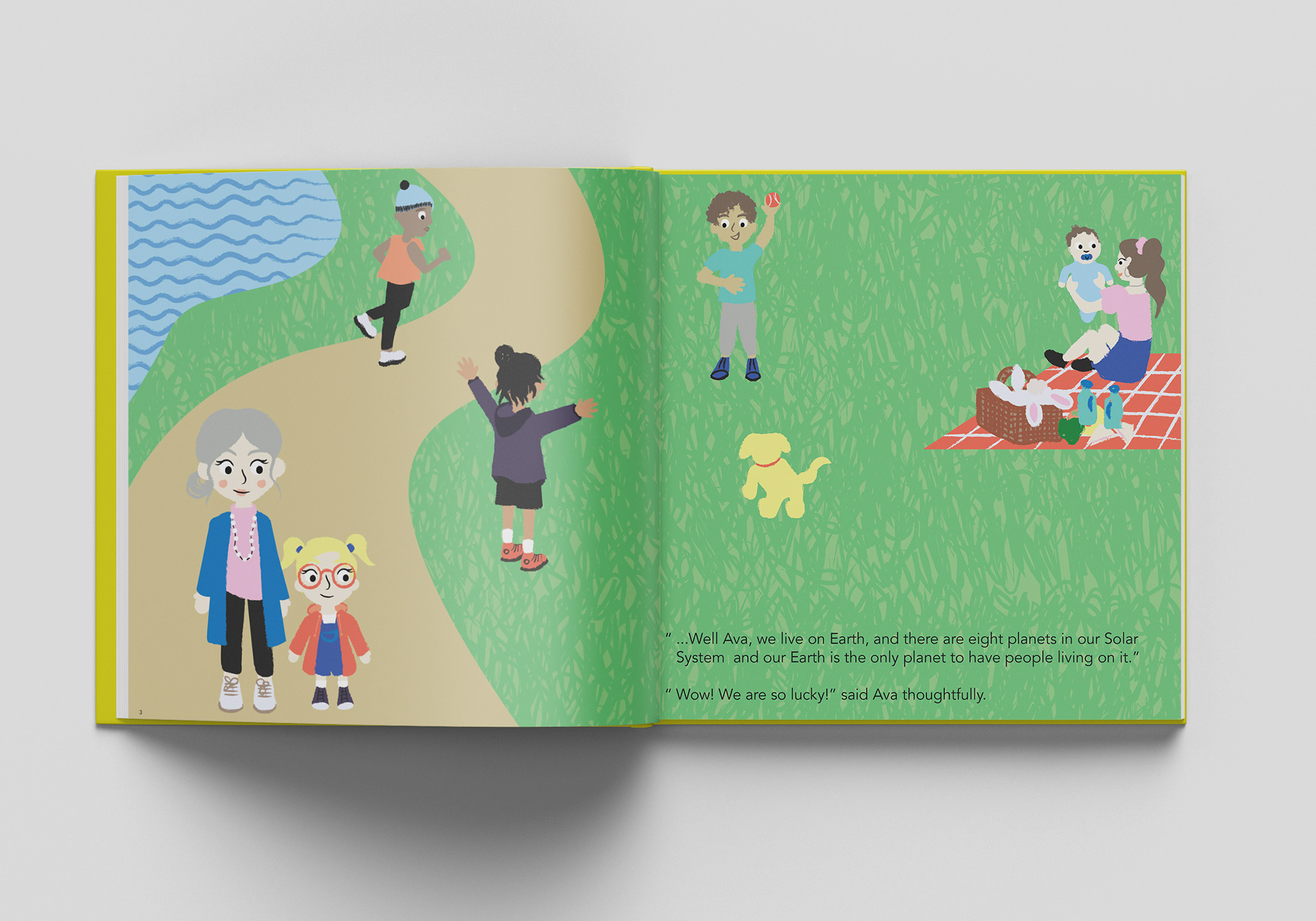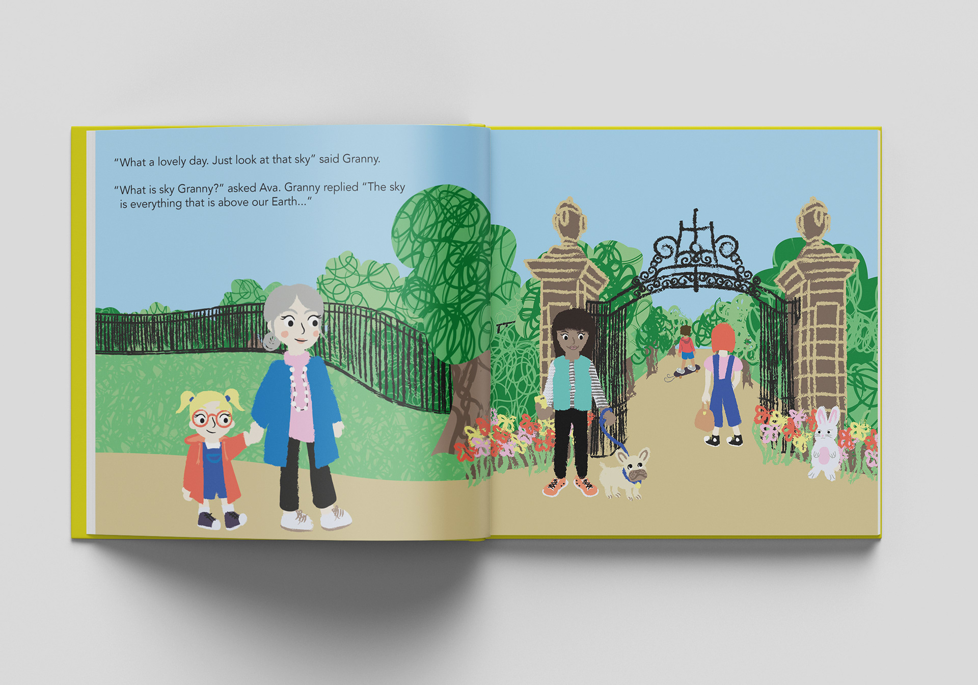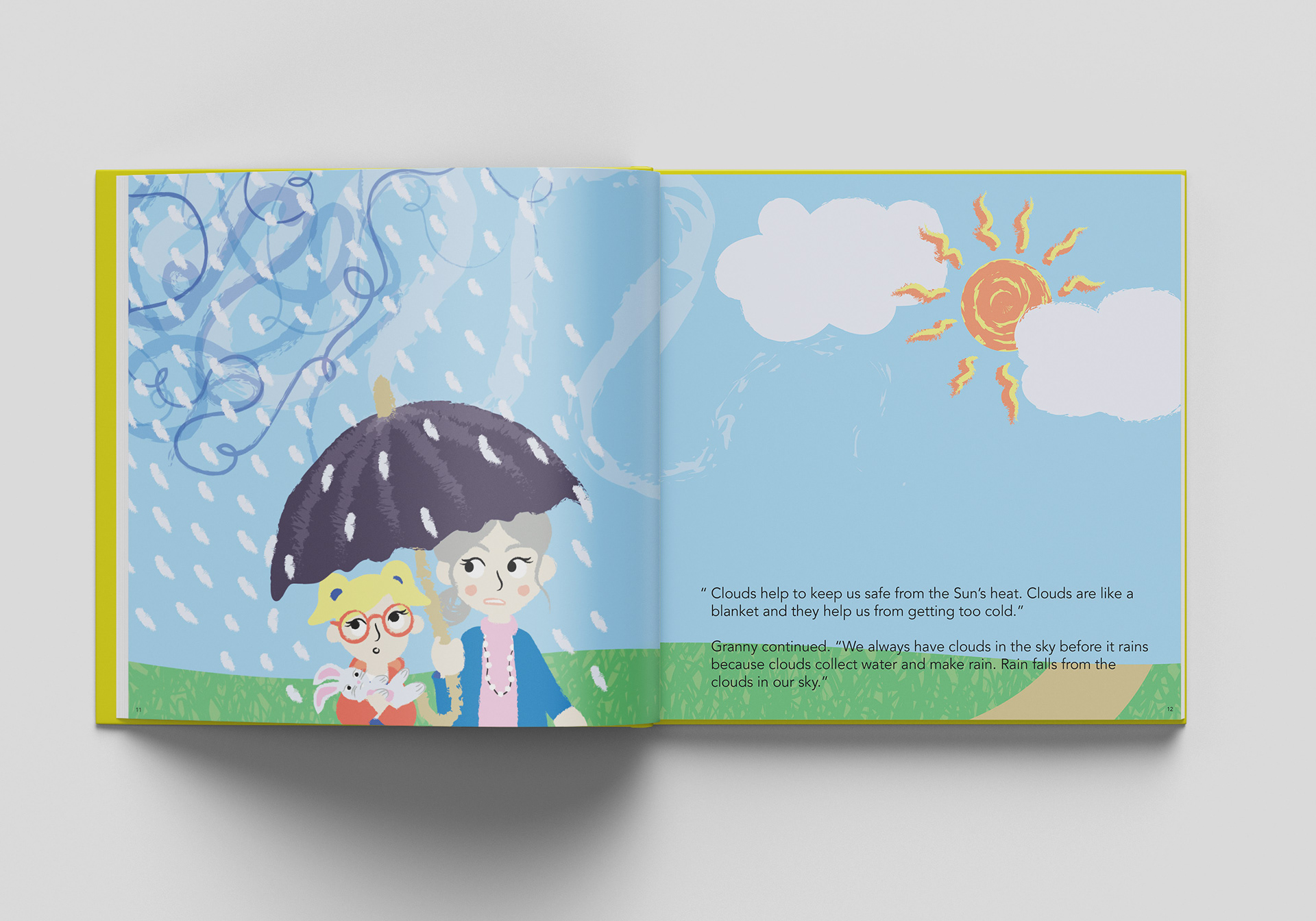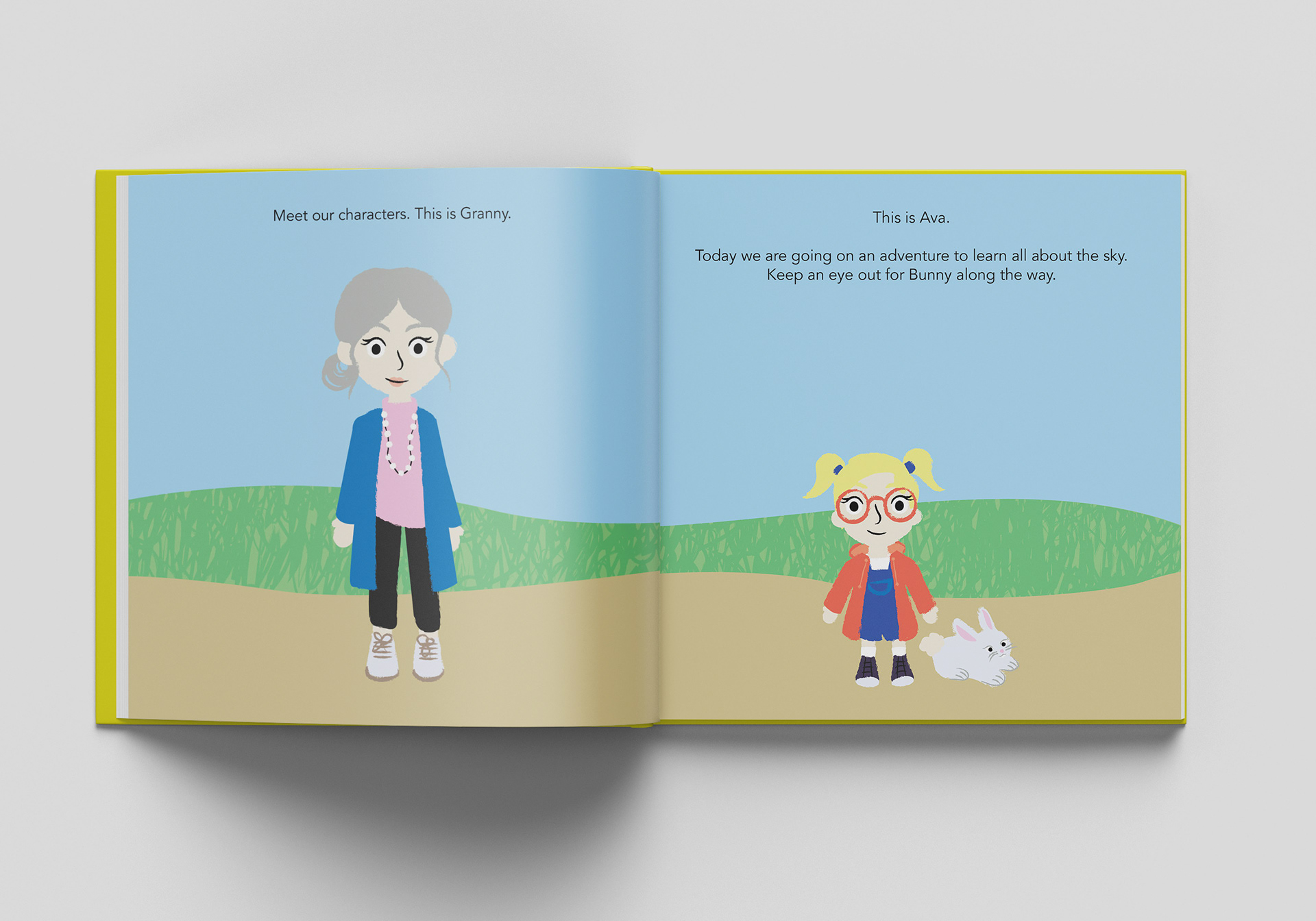Ava & The Sky is an educational children's book that I was commissioned to illustrate. The book is a short story, aimed at a young audience of 2-5 year olds with a female skew, explaining about the science of the sky and using bright colours and bold textures to captivate young audience.